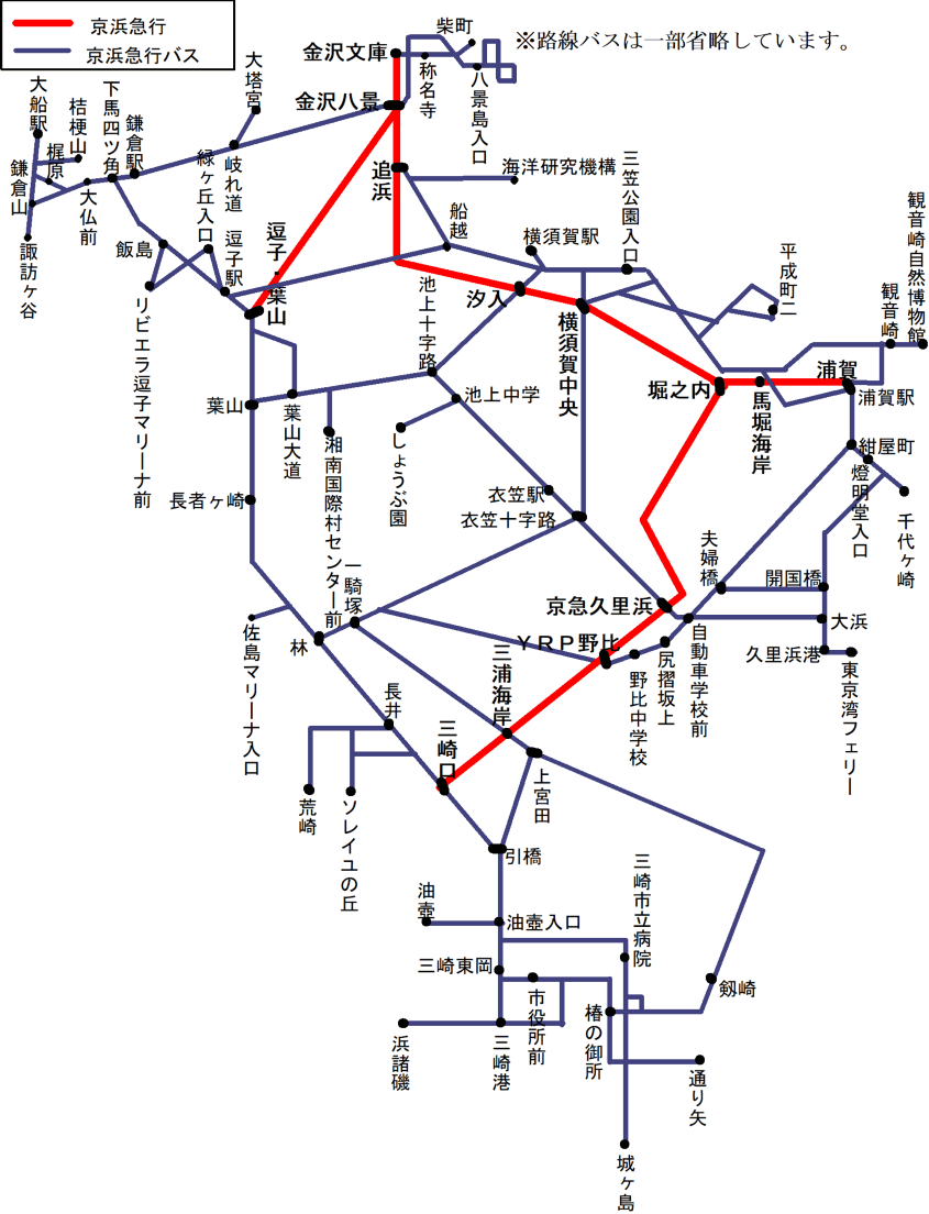 京急バスについては鎌倉・逗子付近・野比付近では対象外の路線がありますので注意してください。下記の路線については有効です。